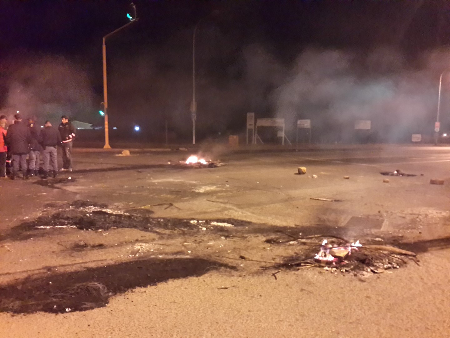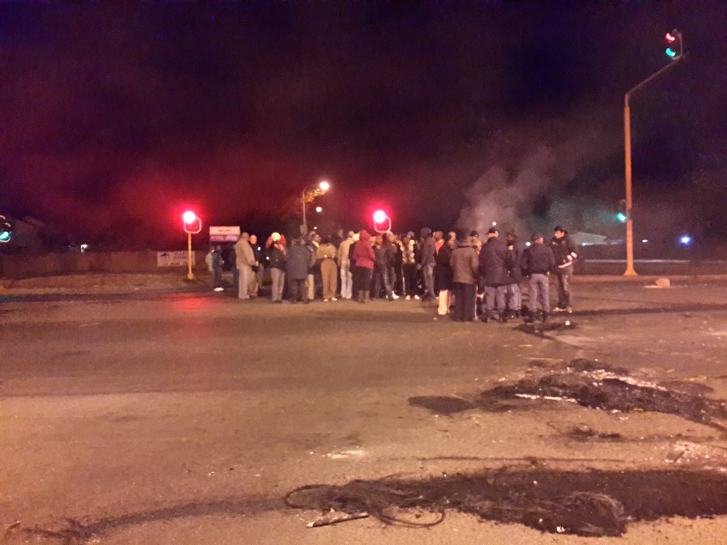 Vermy asb ten alle koste die Ou Johannesburgpad. Betogings het begin en die pad word deur brandende bande en boomtakke versper.