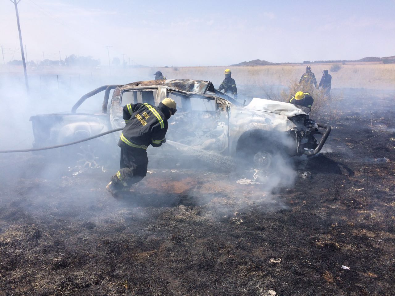 ER24 paramedics, along with Fire services, arrived on the scene and found the bakkie lying in the veld some distance away from the road. The bakkie was already well alight by the time emergency services arrived on the scene.