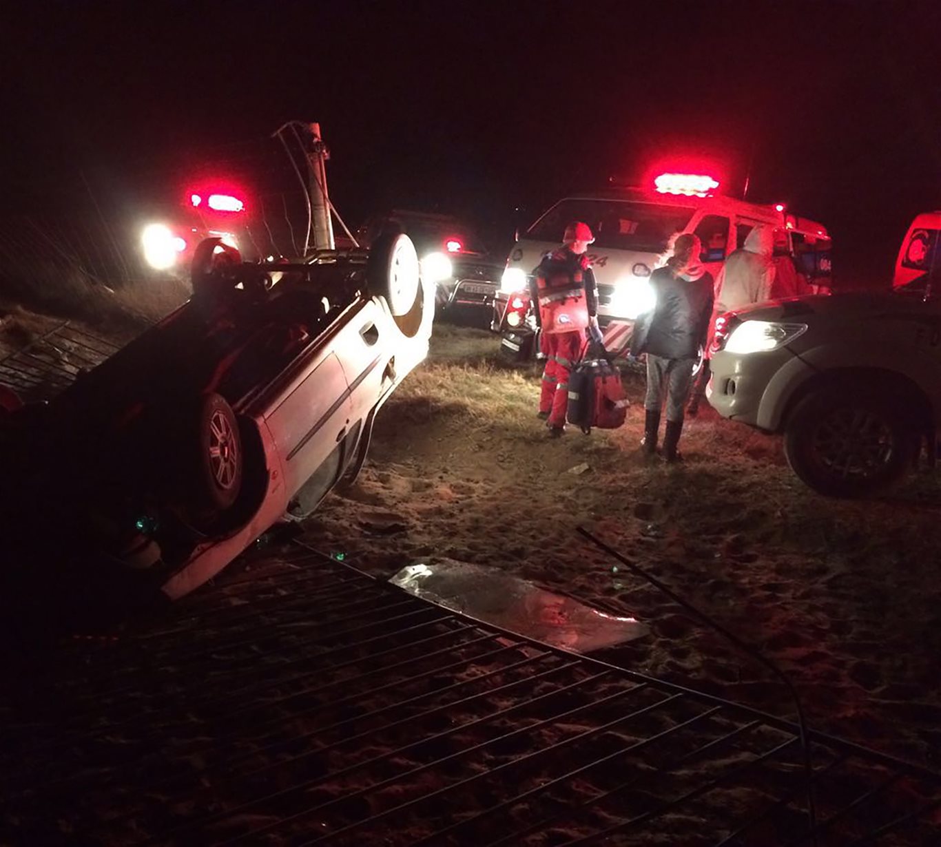 At 7pm last night, paramedics from ER24 arrived on the scene where they found the vehicle lying on its roof on the side of the road. It appears that the driver lost control over the vehicle and crashed through a fence and gate on the side of the road. A man was found with fatal injuries a few meters away from the vehicle. Another two men and a woman were found on scene with various injuries ranging from fractures to cuts and bruises.