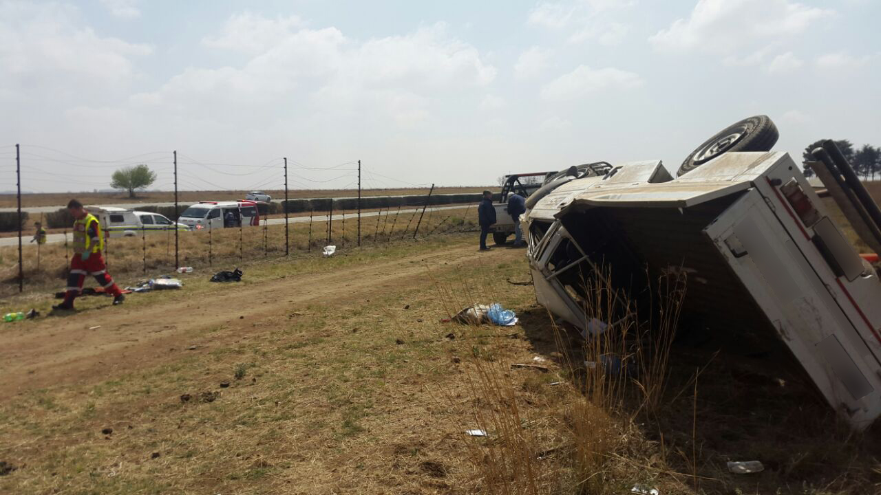 It is believed that the driver lost control of the bakkie, causing it to roll off the highway and over a fence, coming to rest in the field. A farmer, who had been working nearby, had witnessed the incident and immediately rushed to the men’s aid.