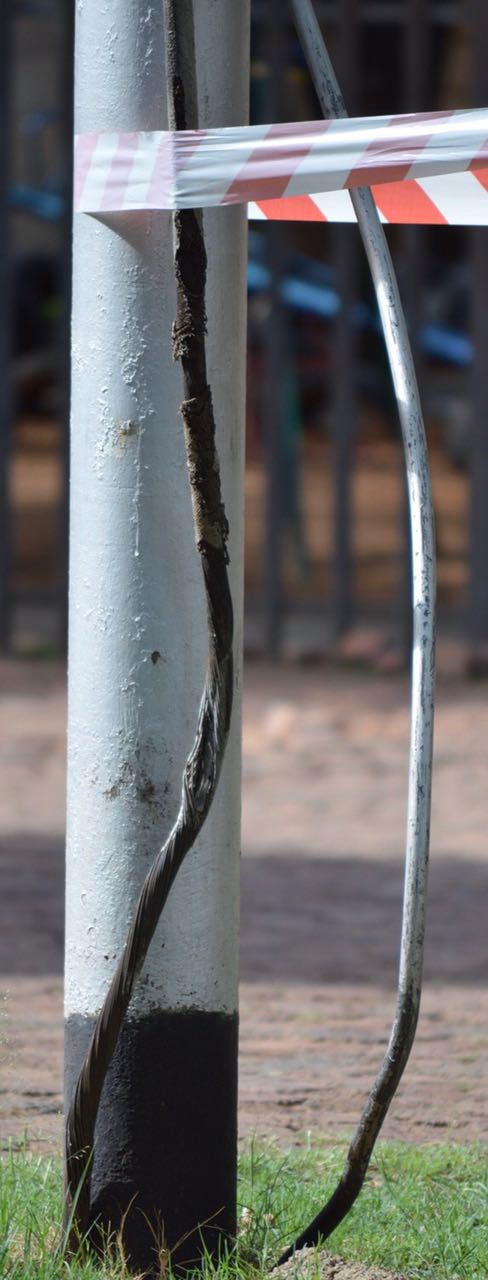 “Gelukkig het hy geen skade of brandwonde opgedoen nie en ons is so dankbaar daarvoor. Ek het regtig baie groot geskrik,” sê Vanessa. Intussen het afgevaardigdes van die Emfuleni Plaaslike Munisipaliteit die lamppaal met die kragdrade reggemaak om te voorkom dat so iets weer gebeur.