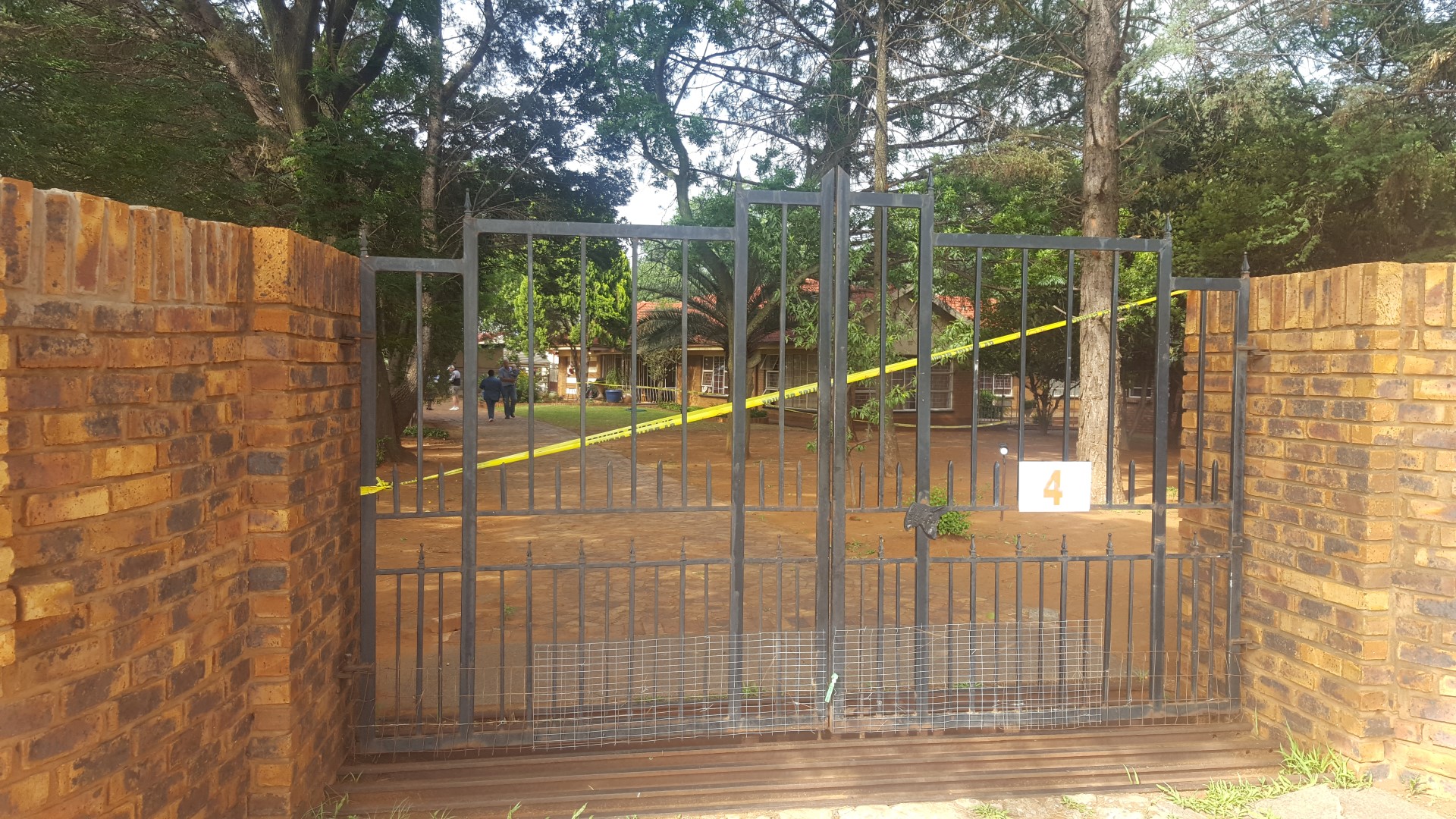 Die polisie en forensiese ondersoekspan is steeds op die toneel.