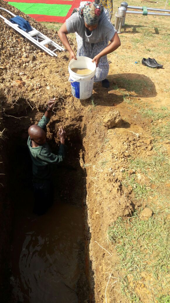 Met hul aankoms by die begraafplaas was die grafte vol water en sommige moes selfs met emmers die water uit die grafte skep.