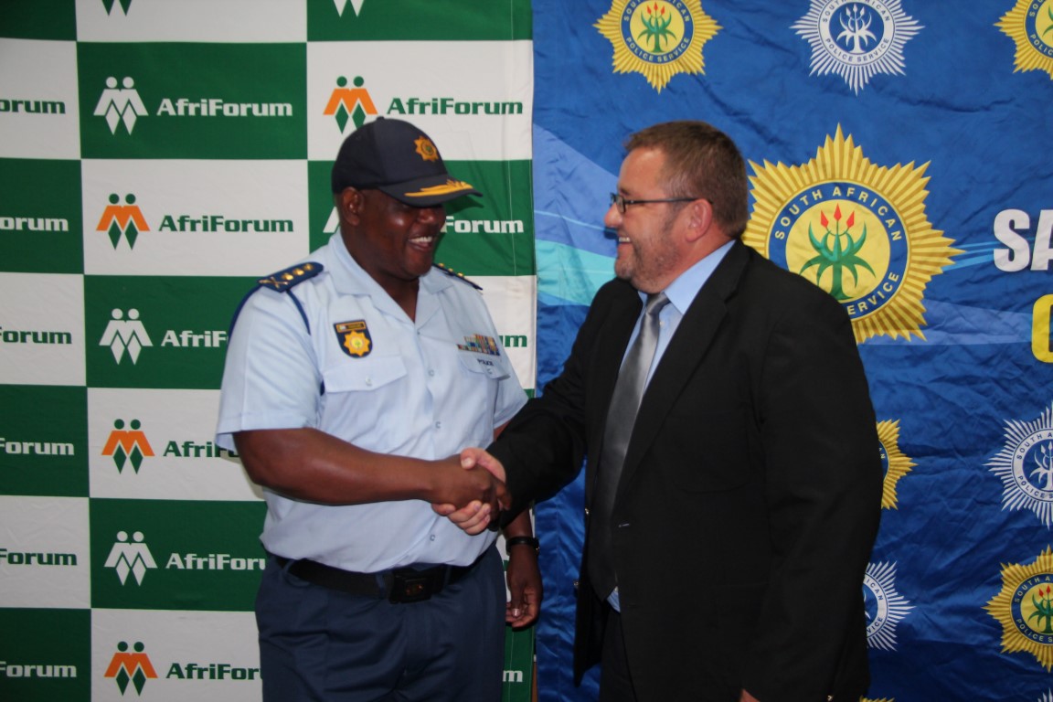 “Die SAPD het AfriForum se veiligheidstruktuur vanoggend amptelik as vennoot in die geveg teen misdaad erken. Deur dié tipe samewerking kan ons van Suid-Afrika ’n veiliger plek maak.” Lt.genl. Khomotso Phahlane, waarnemende nasionale kommissaris van die SAPD, sê dat die SAPD verbind is tot die voorkoming en bestryding van misdaad oor alle gemeenskappe heen. “Ons het in die afgelope jaar met AfriForum geskakel en bevestig dat hierdie struktuur ’n belangrike rol te speel het in die deel van inligting, asook met aktiwiteite teen misdaad en ondersteuning aan die SAPD om geïdentifiseerde gemeenskappe by aktiwiteite teen misdaad te betrek,” sê lt.genl. Phahlane.
