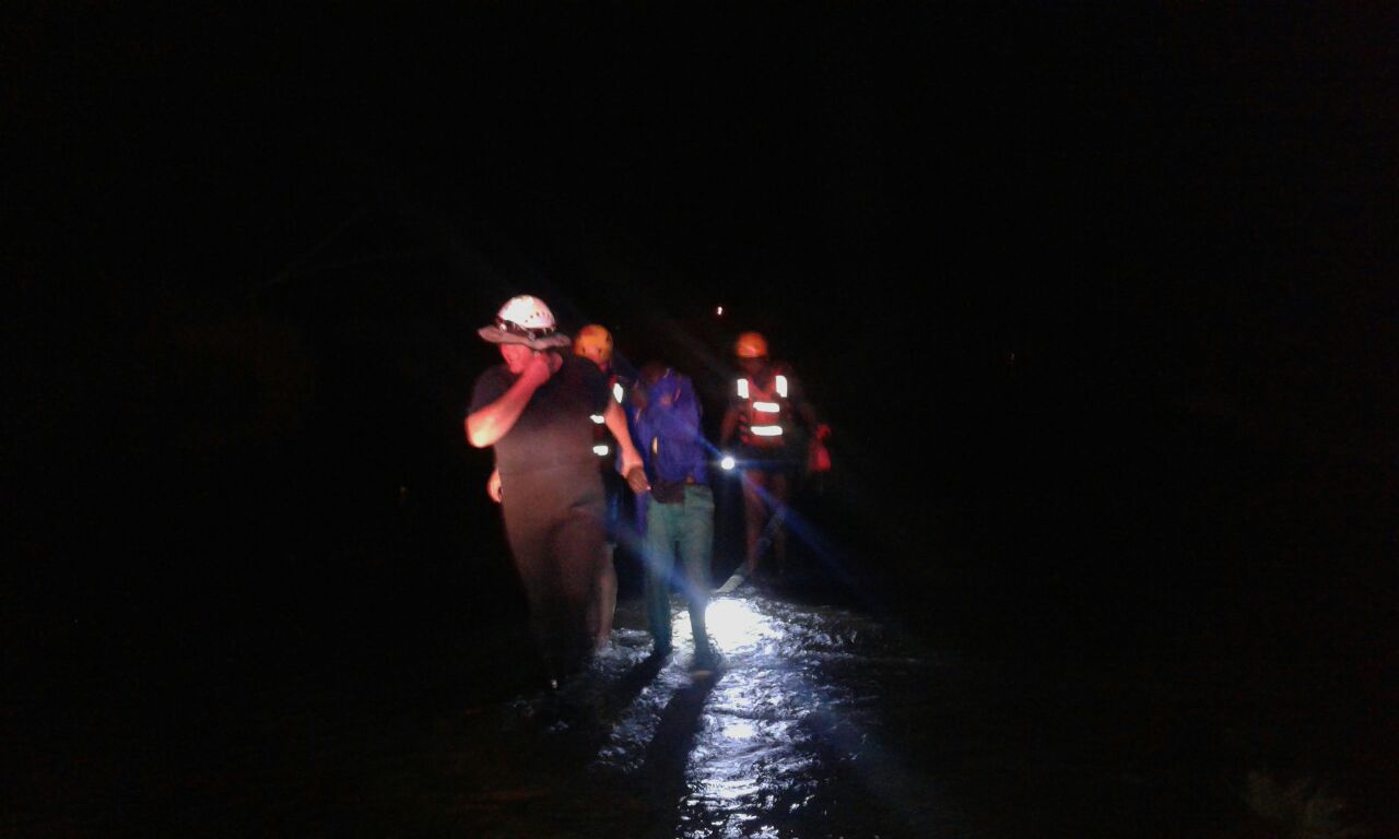 Midvaal Brandweer is net na 21:00 ontbied waar hulle die man, wat vir lewe en dood aan die boom vasklou, gevind het. Hy het glo oor die brug gestap, toe die stroom hom meegesleur het.