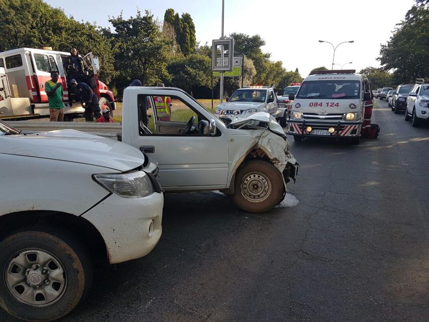 VANDERBIJLPARK. - Ses mans is Dinsdag beseer in 'n botsing tussen twee bakkies by die kruising tussen Firstraat en Hendrik van Eck-boulevard in SE3, Vanderbijlpark.