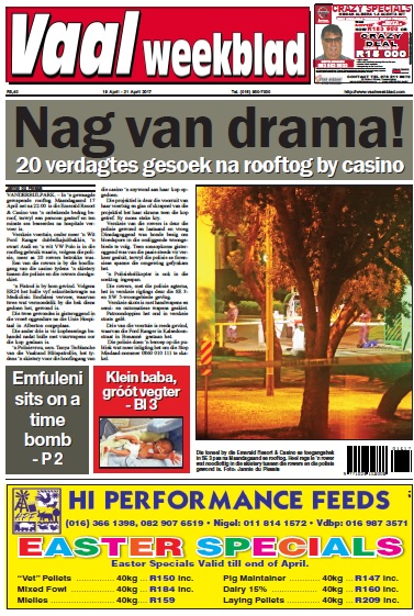 Dié week se Vaalweekblad is reeds uitverkoop by baie verkooppunte, maar kyk gerus of jy nog 'n eksemplaar in die hande kan kry want dit is propvol interessante nuus.