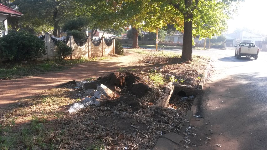VANDERBIJLPARK. – Afvoerslote op die hoek van Bequerel straat en Hertz Blvd is ‘n tyd gelede skoongemaak maar rommel na die werk versuur die omgewing.