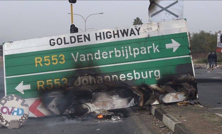 Ontstoke inwoners versper paaie met brandende bande en klippe, terwyl verskeie winkels en ‘n vulstasie het gister onder vandaliste deurgeloop.