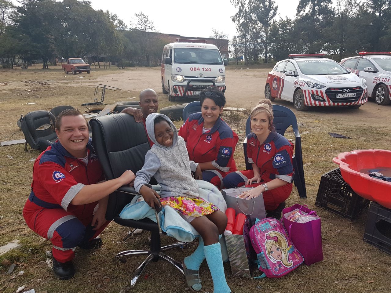 But Tannith and the team decided to do even more for the little girl and her family. “When we arrived there we realised the mother was taking care of eight children. We decided that we will be buying the family groceries every month for the rest of the year,” said Tannith. “Dr Robyn Holgate has also kindly offered her services. She will be taking over all further assessments and checkups needed by the little girl relating to her injury. We will also be sponsoring the little girl’s transportation to and from the hospital,” said De Wet Jooste, branch manager of ER24 Johannesburg North, who also joined on Monday.