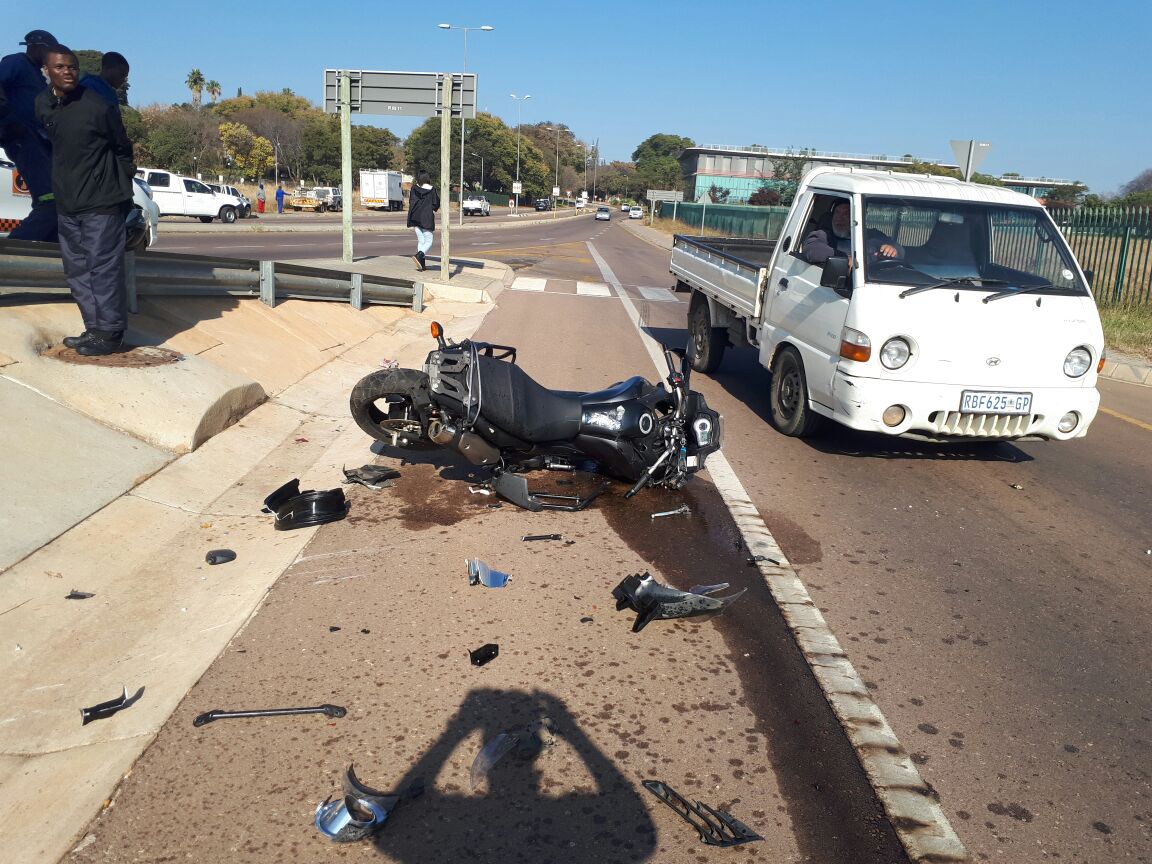 Die bestuurder van die ligte voertuig, waarmee die motorfietsryer gebots het, het geringe beserings opgedoen.