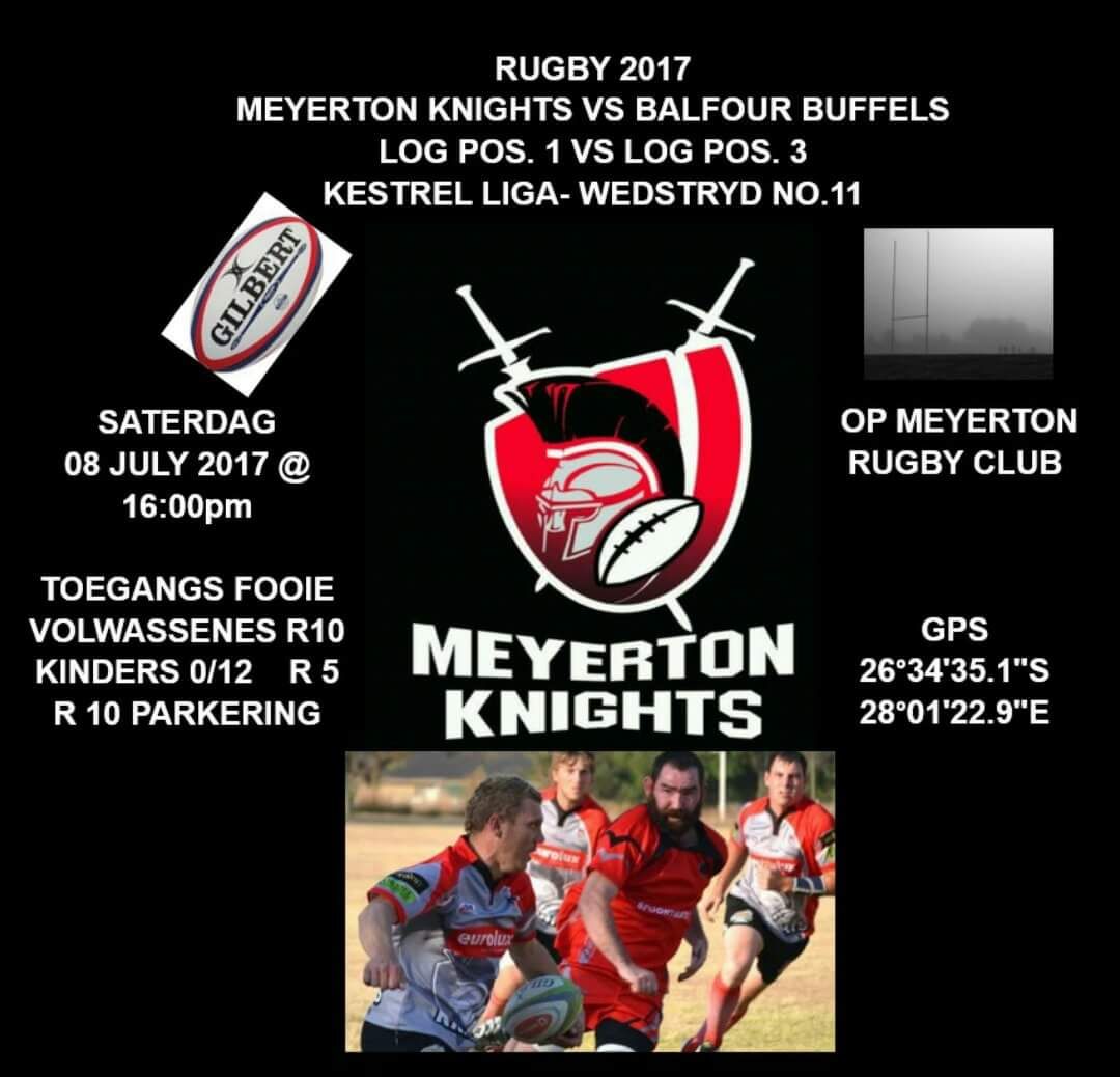 Die Meyerton Knights United Rugbyklub hou Saterdag 8 Julie om 15:30 ‘n insameling vir die kinders wat tans in veilige bewaring is by pleegouers. Die hoofwedstryd is tussen die Meyerton Knights teen die Balfour Buffels en begin om 16:00 by die Meyerton rugbyklub in Begonia weg, Meyerton. Die inisiatief van Leonie du Plessis is maar een van baie aanbiedings wat instroom vir die kinders. Sy het op haar beurt die voorsitter van die klub gekontak en baie vinnig is die geleentheid gereel vir die kinders. Vir enige kind is dit traumaties om uit sy bekende omgewing weggeruk te word en skielik moet aanpas by ander omstandighede tydens die drie maande wat hul by hul nuwe tuistes gaan deurbring terwyl die saak ondersoek word na die beweerde verkragtings en ander onheilghede wat in die huis aangegaan het.