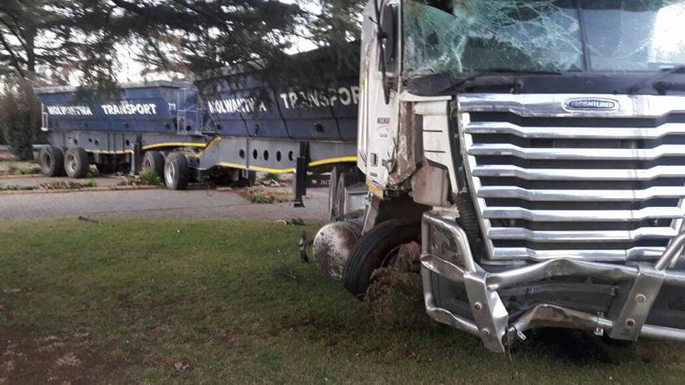 Die vragmotor het deur Krugerlaan skool se muur gery.