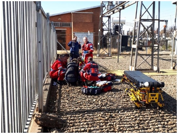 Russel Meiring, ER24- woordvoerder, sê met paramedici se aankoms op die toneel het hulle die man langs ’n draad onder ’n spantoring gevind.