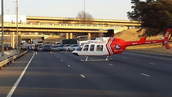 “We prefer not to land on a road. It remains a safety risk. We prefer to land on a field close to the scene but sometimes the road is the only option. We would then get the traffic police, the fire department or the police to assist. If not, our crews assist by using road cones or blocking the road with ER24 vehicles.”