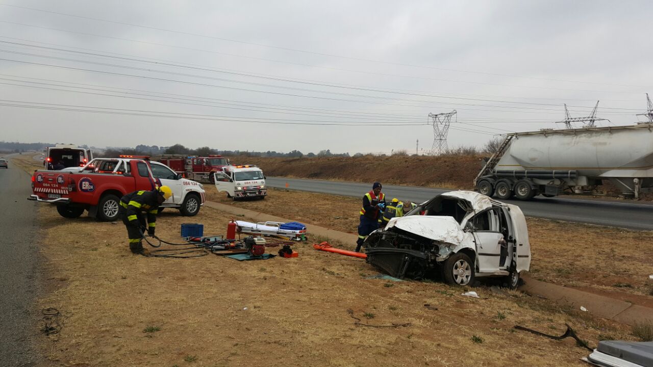 Nooddienspersoneel van ER24 en Midvaal Brandweer is na die toneel ontbied.