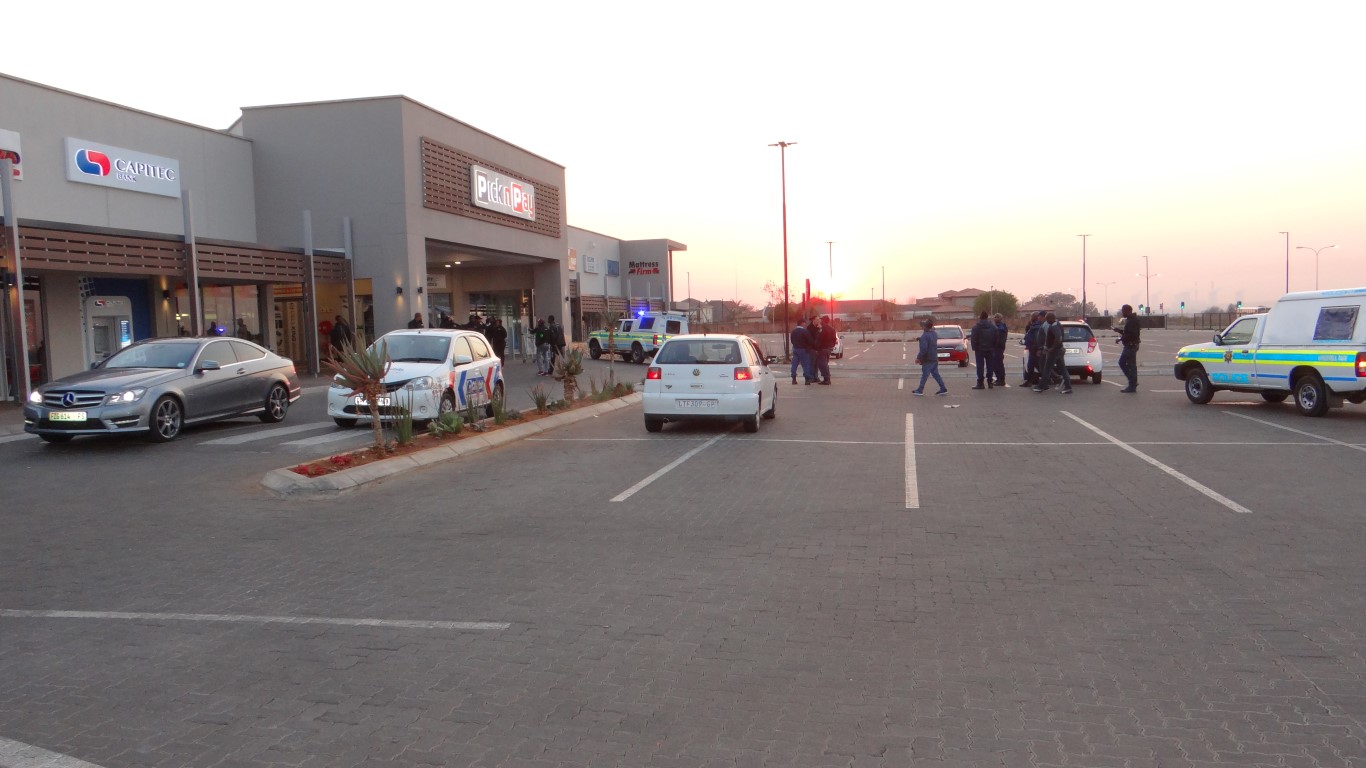 Vanderbijlpark SAPS is investigating a business robbery case that took place this morning at 06:00. It is alleged that early this morning when the store was about to open five (5) armed suspects ran towards the shop forced the employees in the alley of the trolleys, locked the security guard in the guard room and broke open the glass door with a puk entered the shop and took a lot of cigarettes and cell phones. Suspects fled with a Ford Focus and a white bakkie. Value of stolen items is unknown.