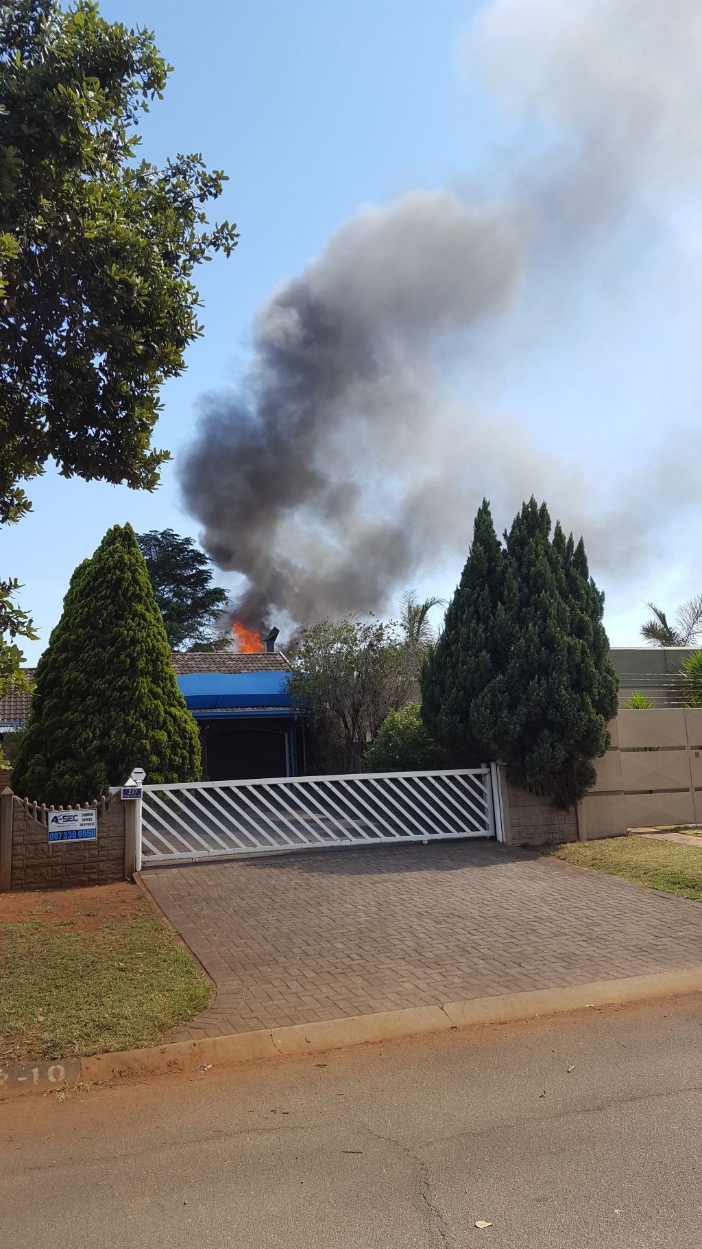 Groot rookwolke en vlamme wat hoog in die lug opskiet is te sien in die agterplaas of in die agterste deel van die huis in Oranjerivierstraat, Vanderbijlpark.