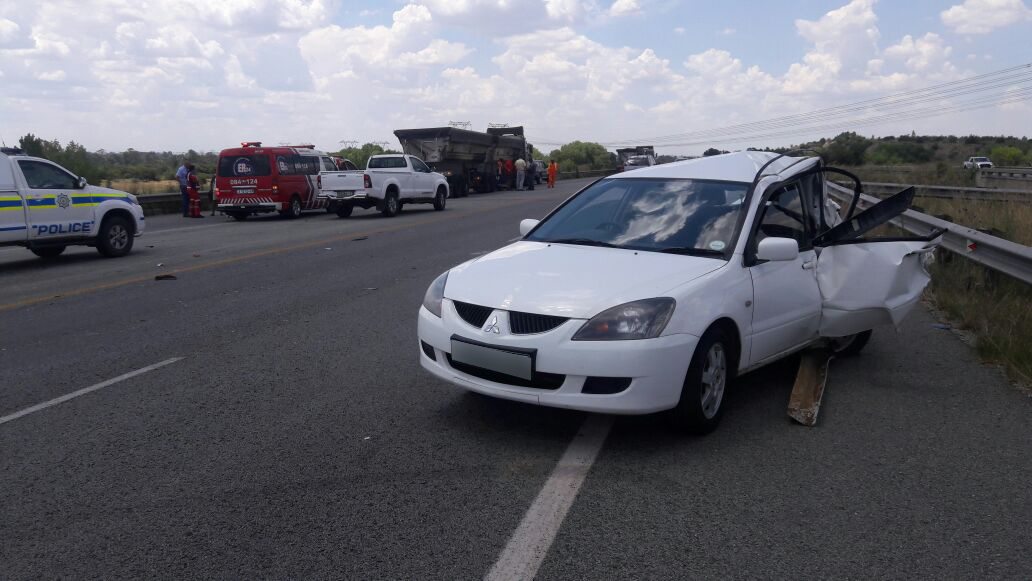 VILJOENSDRIFT. – ER24 reported that three people were left injured this afternoon, including a three-year-old child, when a truck rear-ended a light motor vehicle on the R59 near the Deneysville turnoff in Viljoensdrift.