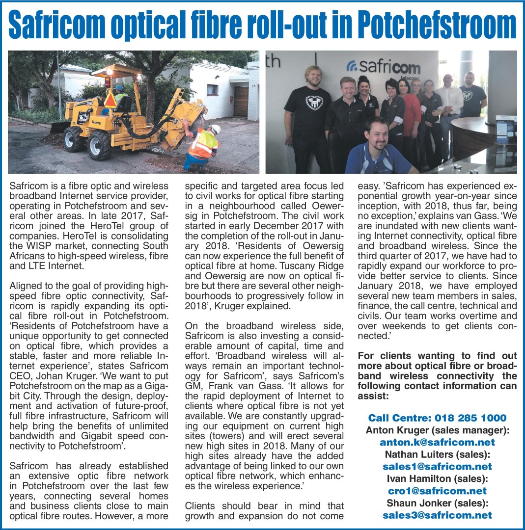 Safricom optical fibre roll-out in Potchefstroom