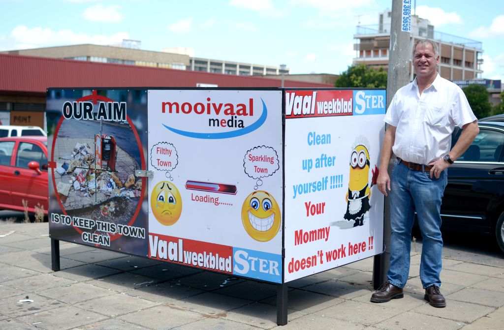 Koerantgroep help om sakesentrum te verfraai met groot nuwe vullishouer