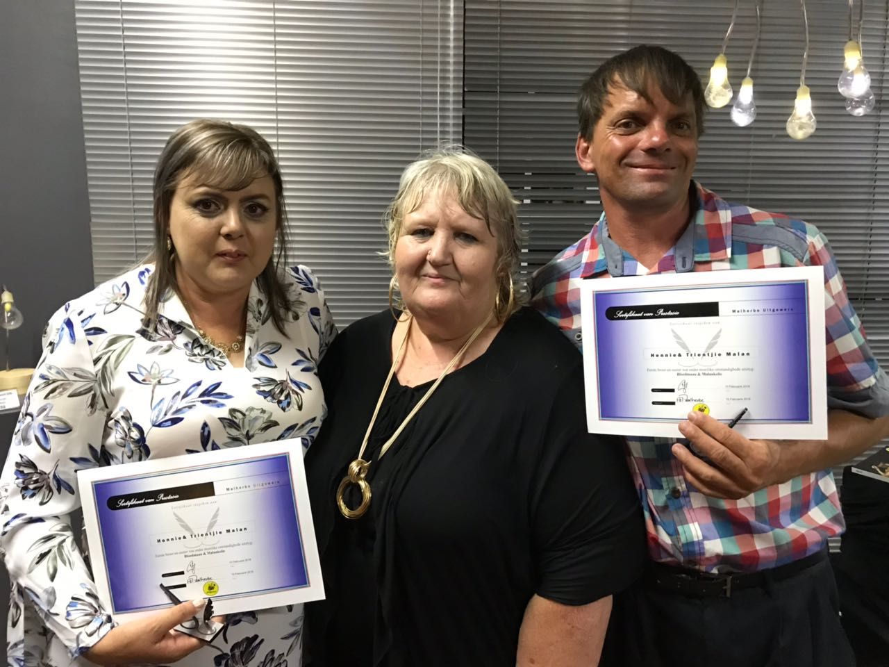 Dié eer het onlangs vir Hennie en Trientjie Malan, albei gebore Vanderbijlparkers, te beurt geval. Trientjie is die oudste van drie kinders en Hennie die middelkind. Die Malan-gesin het in Vanderbijlpark gewoon voordat hulle in 1987 na ‘n plaas in die distrik verhuis het, waar elkeen moes hand bysit met die plaaswerk.