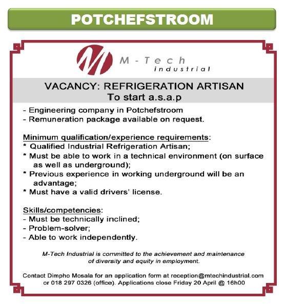 Home/Lifestyle/Refrigeration Artisan needed – Potch Lifestyle Refrigeration Artisan needed – Potch Refrigeration Artisan needed - Potch April 13, 2018 Online Team Less than a minute Facebook X LinkedIn Tumblr Pinterest WhatsApp Telegram Share via Email Print Paid Advert April 13, 2018 Online Team Less than a minute Facebook X LinkedIn Tumblr Pinterest WhatsApp Telegram Share via Email Print