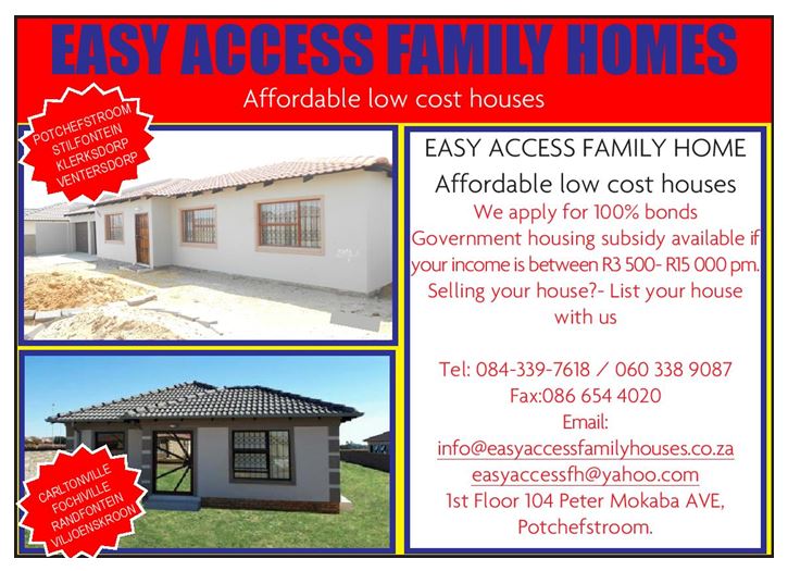 Easy access family homes. Affordable low cost houses.