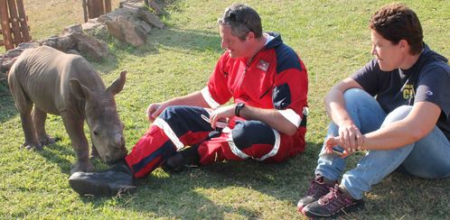 Thor, an orphaned black rhino, almost died a few months ago but today he is enjoying daily mud baths and finds himself the center of attention among a group of friends. ER24 executives and head office staff recently visited Care for Wild Africa, home to a number of orphaned and or injured animals including Thor who made headline news late last year. ER24 released a statement about Thor’s horrific past in December last year.