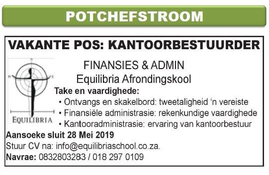 Potchefstroom: Vakante pos: Kantoorbestuurder.