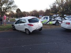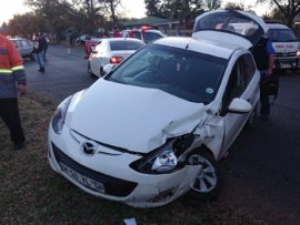VANDERBIJLPARK. – ‘n Taxi en ‘n Mazda 2 was net na 17:00 vanmiddag 22 Mei, in ‘n ongeluk betrokke op die T-aansluiting van Heavisidestraat en Currie boulevard.