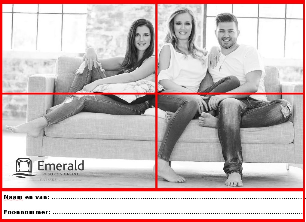 Knip dan elke week se blokkie uit en plak dit op die swart/wit-foto. Sodra al jou volkleur-blokkies geplak is, kan jy dit indien by die Emerald Resort & Casino se kliënte-toonbank, of pos dit in die wedstrydboks by enige van die volgende winkels:
