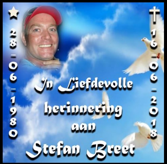 Yvonne Breet van Niekerk, suster van wyle Stefan Breet wat tragies gesterf het nadat hy verlede week in ‘n botsing op die R59-snelweg betrokke was, stuur die onderstaande boodskap en reëlings vir sy begrafnisdiens. (Let wel, dit is VRYDAG en nie Saterdag soos wat in vandag se Vaalweekblad berig is nie):