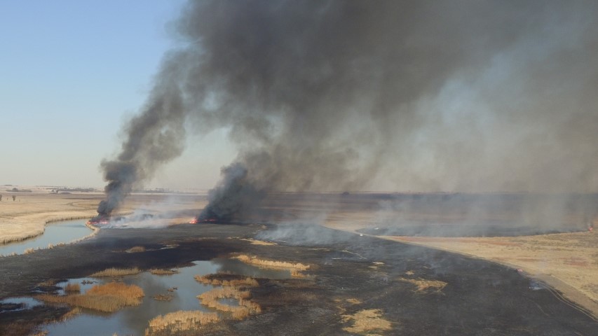 ‘n Massiewe donker rookmassa het ‘n groot gedeelte van die middag oor die gedeelte gehang. Voëls het in alle rigtings geskarrel terwyl sommige dit gesien het as ‘n ideale middaguitstappie tussen die verkoolde riete waar muise, rotte, krappe en ander insekte rondgeskarrel het. Verskeie reiers het mens net sien kop onderstebo pik soos wat hul die feesmaal geniet. Die brandweer was op die toneel maar kon nie veel doen nadat verskeie gedeeltes reeds gebrand het.