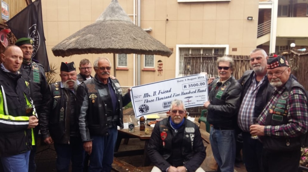 Die Dogs of War Veterane Motorfietsryers Assosiasie in die Vaaldriehoek het onlangs ‘n skenking aan een van hul gewaardeerde “buddies”, Demetri Friend, gemaak as bydrae vir ‘n noodsaaklike oogoperasie wat hy moet ondergaan. Dogs of War, met lede wat tussen 1966 en 1989 aan die Grensoorlog deelgeneem of die land op ander maniere gedien het, sien deur middel van die Buddy-projek om na veterane wat dringend ondersteuning en mediese behandeling nodig het. “Dit is ‘n voorreg om ‘n buddy soos Demetri by te staan ter erkenning van sy onbaatsugtige werk met die opsporing van verlore medaljes vir ons veterane. Sodoende verseker ons ‘n nalatenskap aan hul kinders,” sê Johann Heyneke, sameroeper van Dogs of War in die Vaaldriehoek. Enigeen wat hul wil ondersteun of by die assosiasie wil inskakel, kan Johann by 082 453 1065 of (016) 365 5572 kontak, of stuur ‘n e-pos na johann@bmi-steel.co.za.