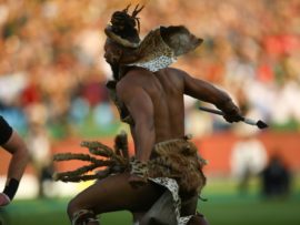 Action during Not even an intimidating stare dwon by one of the Impis bothered the All Black captain Kieran Read. the rugby test between the Springboks and All Blacks.