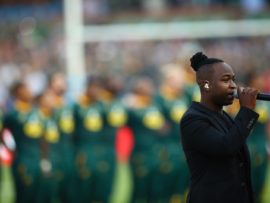 Refentse Morake singing the national anthem.