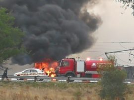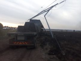 Mnr. Jan Oosthuizen (33), ‘n werknemer by GTWLS Warehouse, het op die toneel gesterf toe die Suzuki Vitara onder ‘n 18-wiel trok beland het en ‘n ent saamgesleep is. Die trok het teen een van die kragpale tot stilstand gekom en ‘n kortsluiting veroorsaak, waarna ‘n brand ontstaan het.