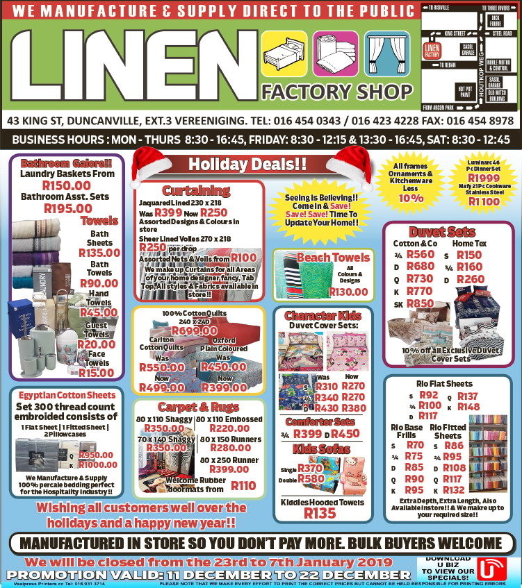 Linen Factory Shop. We manufacture & supply direct to the public.