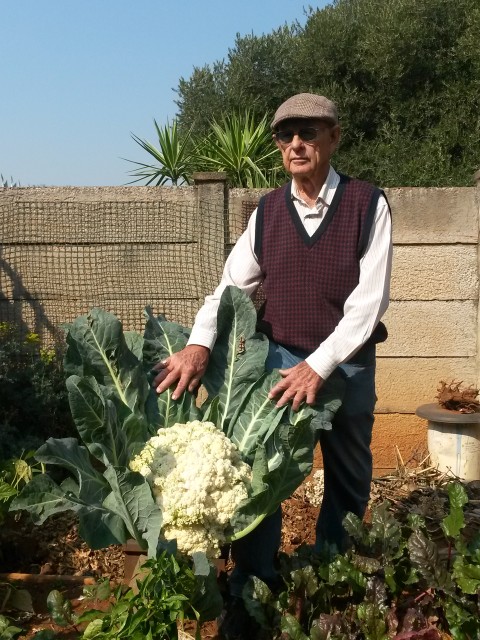 Oom Andries Joubert (79), wat op 4 Maart 1966 in Vaalweekblad verskyn het met ‘n reuse pampoen van 60 pond (27kg), se hande staan steeds vir niks verkeerd as dit by groente kom nie. Sy nuwe knewel is ‘n blomkool van 3.2 kg wat op 23 Mei afgeneem is en is die volgende dag geoes. Oom Andries bly in Macowenstraat in Vanderbijlpark. Jare lank is hy doenig in sy groentetuin en produseer verskeie groentesoorte uit dié klein tuin.
