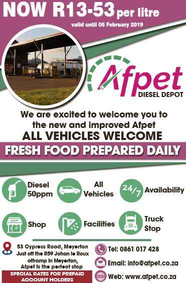 Afpet diesel depot. All vehicles welcome. Fresh food prepared daily.