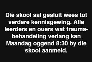 Mnr. Pieter Lourens laat weet: Dringende navrae rondom leerders wat na vanoggend se tragedie nog nie met hul ouers kontak gemaak het nie, kan gerig word aan die volgende noodnommers: