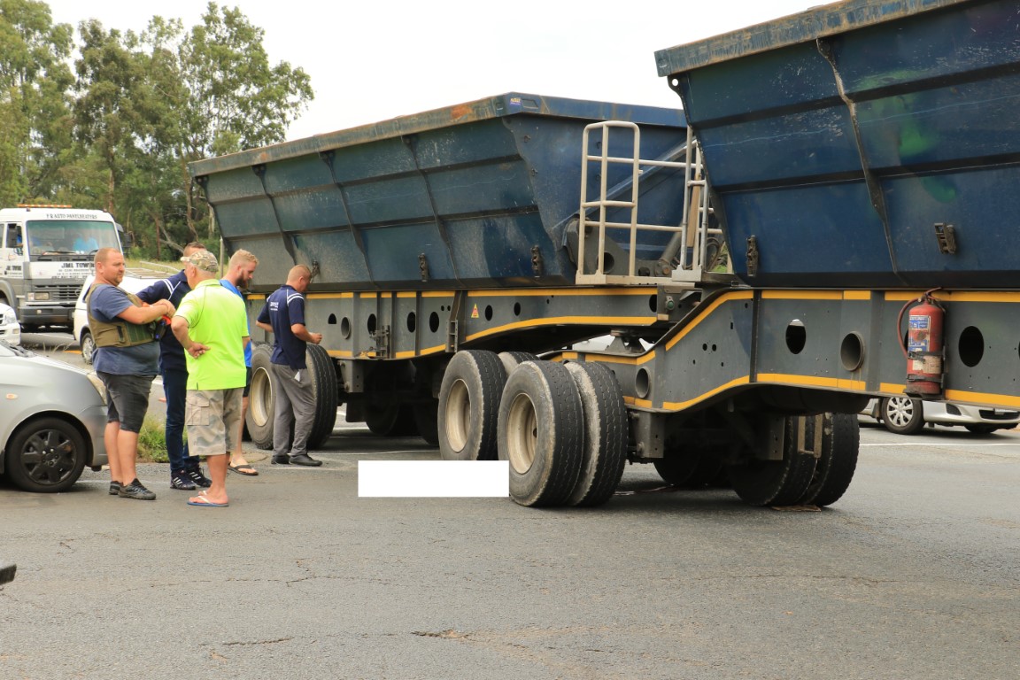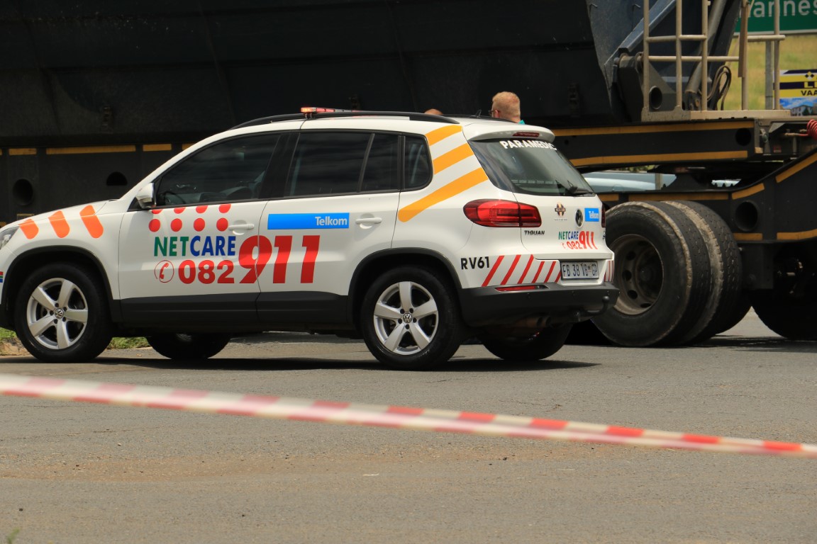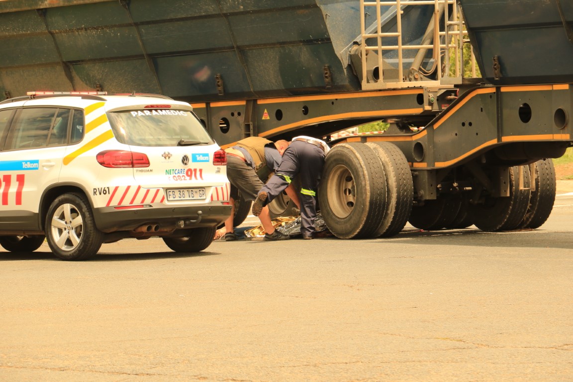 Die 57 jarige man, wie se naam bekend is aan Vaalweekblad, het ongeveer 11:40 vanoggend Woensdag 13 Februarie, onder die trok se wiele beland nadat hy heelwaarskynlik sy balans verloor het. Vaalweekblad gaan in dié stadium nie sy naam bekend maak alvorens enige familie of vriende vorendag gekom het nie. Hy was egter op slag dood en Netcare 911 het hom op die toneel dood verklaar.