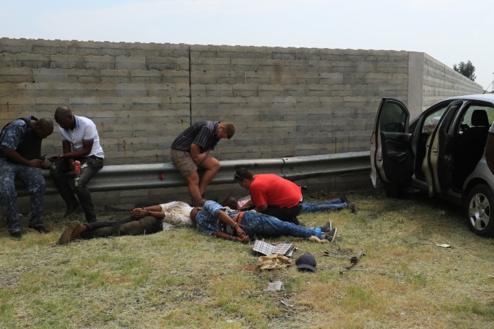Daarna was lede van die CW buurtwag, DAI Sekuriteit, JH Tactical Response Team, EMS Sekuriteit, Rescom, insleepdienste en die polisie vinnig op die toneel. Sommige van hulle was ook in die jaag- en soektog betrokke. Gauteng EMS was ook op die toneel aangesien een van die rowers so bietjie asma probleme ondervind het.