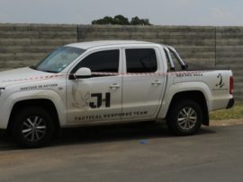 Twee lede van die Vaal Response Unit (VRU), wat met hul privaat motor diens doen aan die gemeenskap om ons dorp veiliger te maak, het die diewe in ‘n hoëspoed jaagtog op ‘n draai in Belladonna straat in Flora Gardens van die pad afgestamp. Twee van die diewe het met ‘n gesteelde Ford Ecosport, met vervalste nommerplate, teen ‘n muur gebots en is daarna gearresteer. Net voor die draai het ‘n lid van A-SEC sekuriteit sy wapen op die aankomende voertuig gerig. Die derde inbreker wat uit die voertuig wou spring en weghardloop, het uit die voertuig geval toe hulle die spoedwal voor die draai tref en is ook gearresteer.