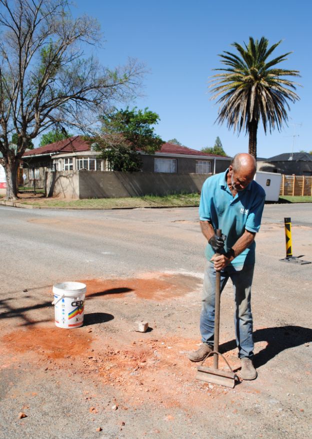 Die 58-jarige Chris Locken van Parys se inisiatief om slaggate in strate in die woonbuurte reg te maak waar dit nou al bykans onbegaanbaar geword het, is sommer gou deur inwoners raakgesien.