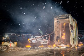 Die Rhino Rally wat vanjaar vir die tweede jaar agtereenvolgens in Parys by die Afri Dome gehou is, is tot ‘n groot mate deur koue nat weersomstandighede gekniehalter. Dit het nietemin geen demper geplaas op die motorfietsryers se geesdrif vir die naweek. Die massa-optog kon weens die nat paaie nie gehou word nie. Die foto’s van die waaghals-toertjie deur Enrico Schoeman en Andre de Kock wat gepoog het om eers met ‘n motorfiets en toe met ‘n motor deur twee geparkeerde karavane te jaag, is geneem deur fotograaf Deon Terblanche.