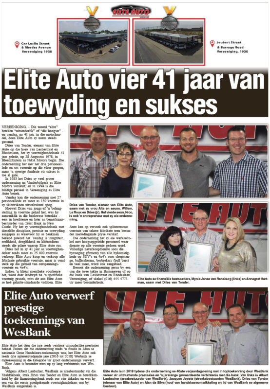 Elite Auto vier 41 jaar van toewyding en sukses.