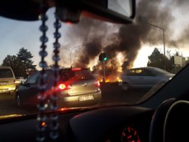 VEREENIGING. – Inwoners van Unitaspark, Duncanville en Sonlandpark het uit pure desperaatheid en frustrasie hulself laat Vrydagmiddag 26 April daartoe gewend om buitebande op die R82 Ou Johannesburg pad te brand. Dit volg nadat die woongebiede reeds ses dae sonder krag moet klaarkom.