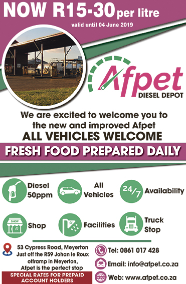 Afpet. Diesel Depot. All Vehicles Welcome. Fresh food prepared daily.